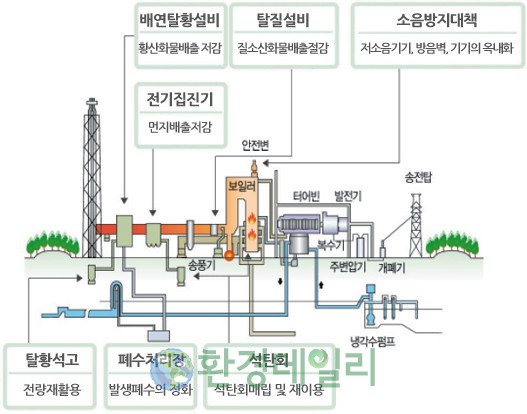 ▲자원순환형 발전소 개념도, 전력산업의 특성상 불가피하게 대량의 자원을 사용함과 동시에 환경물질이 발생된다.이에 서부발전은 폐자원의 재활용과 사전예방 차원의 오염물질관리를 포함 하는 자원순환형 발전소 운영을 통해 우리 사회의 지속가능한 발전에 기여한다는 개념이다. |
