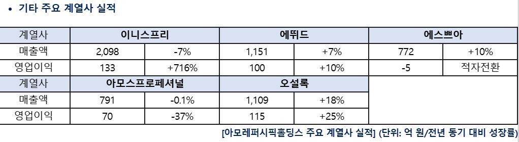 아모레퍼시픽홀딩스 주요 관계사도 그룹 성장에 기여했다. 이니스프리는 채널 포트폴리오 재정비로 손익을 개선했고, 에뛰드는 립·마스카라 등 핵심 메이크업 제품 호조와 크로스보더 확대에 따라 매출과 영업이익이 모두 증가했다.
