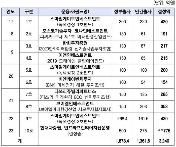 이처럼 환경부, 한국환경산업기술원(KEITI)가 녹색기술 경쟁력은 있으나 자본과 경영능력이 부족한 초기 기업에 투자하도록 집중하고 있다.