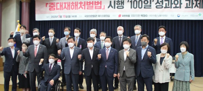 [환경데일리 김영민 기자]박대수 의원(국민의힘 노동위원장)은 16일 의원회관 제1소회의실에서 고용노동부, 한국산업안전보건공단 공동 주관으로 '중대재해처벌법 시행 100일 성과와 과제' 정책토론회에서 법적 손실이 더 필요하다는 의견이 모아졌다.