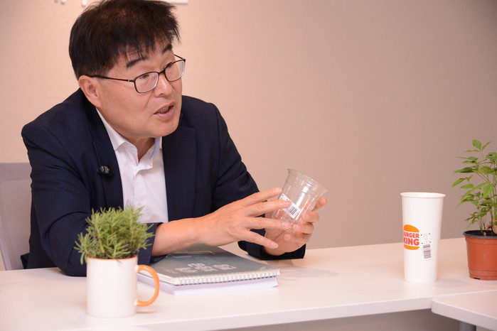 ▲국내 최초 도입한 자원선순환 경제 시스템인 1회용컵 줄이고 다 쓰고 버려도 제대로 버려야 다음 세대에 깨끗한 자연을 남길수 있다고 거듭 참여해달라고 인터뷰 내내 반복해서 당부했다. |