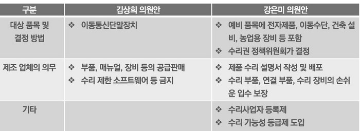 환경부를 향해 구체적인 사례와 전자제품 등 어느 부분을 만져줘야 하는지 들려다보고, 다른 제품까지 포괄적인 접근도 제언했다. 기업들이 반발하는 건, 수리가 용이한 기술력과 제품 정보가 공개돼야 하는데, 이게 가능할까. 영업상 비밀 문제(충돌) 발생이 생길 수 있다고 반박했다.