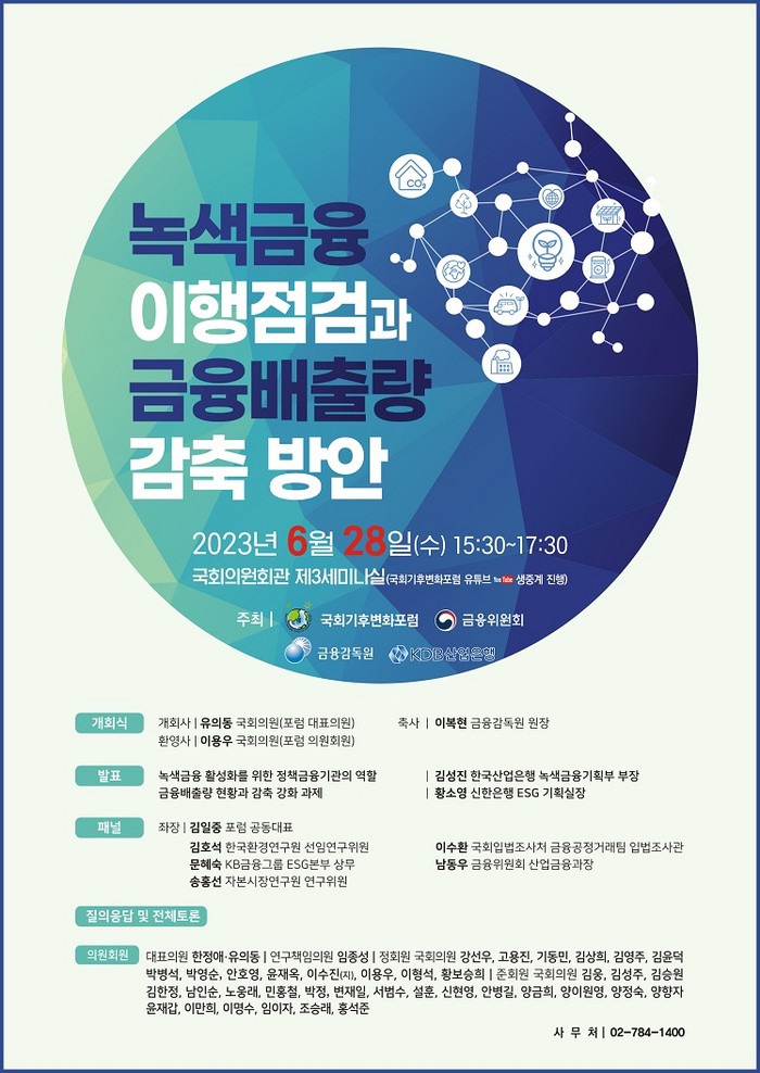 이날 행사는 유의동, 이용우 국회의원을 비롯해 이복현 금감원장 등이 참여하며 '국회기후변화포럼'을 통해서도 생중계가 진행될 예정이다.