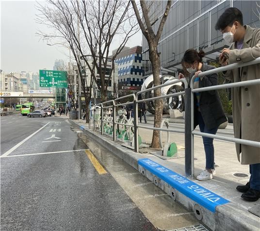 이번에는 또 한번 시민들을 위한 창의행정을 발휘했다. 바로 밀집하는 서울남부터미널 주변 등 버스 정류장 3개소에 도로의 미세먼지·재비산먼지를 줄이고 폭염도 대응할 '서리풀 오아시스'를 시범설치 했다. 이번에 국내 최초로 설치한 '서리풀 오아시스'는 파리의 배수를 통한 도로 물청소 시스템을 벤치마킹했다.