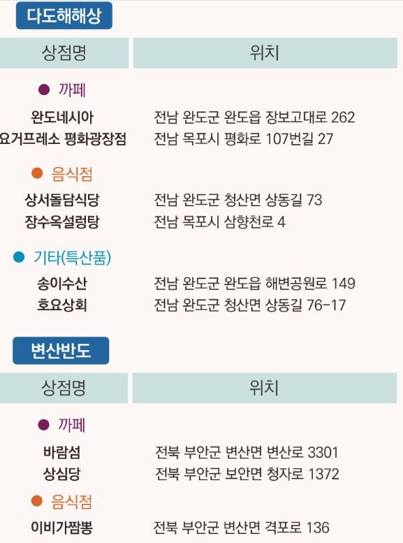 한려해상, 태안해안, 다도해해상, 변산반도 등