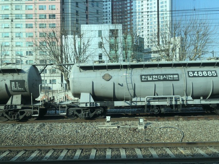 | ▲시멘트 운반 화물열차도 문제다. 운행중이나 시멘트 상차시에 외부로 비산되는데 이에 대한 관리감독이 허술하다는 지적이다. |