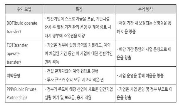 공공 제품의 가격은 주로 '원가와 적정 수익의 합'으로 정해졌다. 다양한 계약 형태로 각 계약의 특색을 지닌 하수슬러지 처리 운영 모델들이 생겨나고, 관계 기관들은 투자 혹은 융자로 이윤을 얻고 있다.