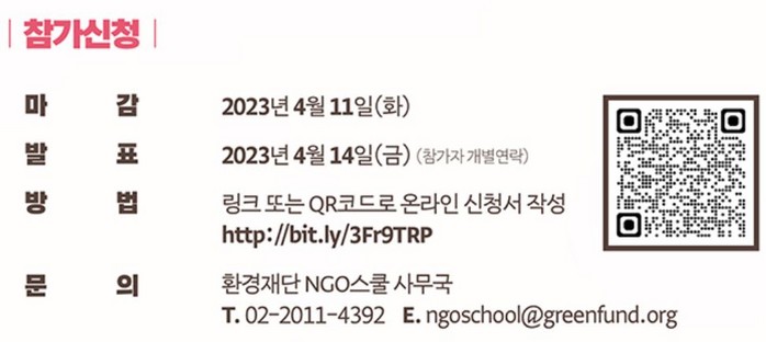 문의 환경재단 NGO스쿨 사무국(02-2011-4392, ngoschool@greenfund.org) 이번 행사는 현대차그룹, 사랑의열매가 힘을 보탰다.
