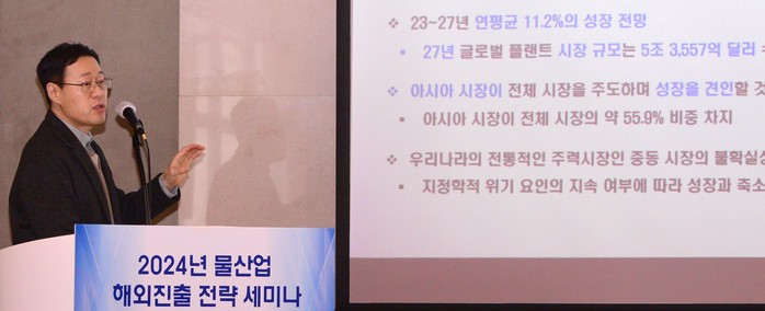 국민대 이상호 교수는 '중동지역 물시장 전망 및 진출 방안'을, 산업연구원 이상현 실장은 '글로벌 플랜트시장 전망', 1부 마지막 순서인 '소부장 육성전략 및 지원 방안'을 한국산업기술기획평가원 정민하 본부장이 맡았다.