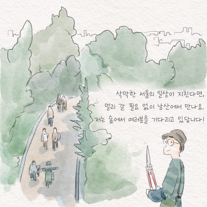 4년차 남산 그린짐리더 유진우 씨는 "제가 어떻게 숲을 만나고 있는지 그린짐리더의 시선에서 이야기해보려 한다."며 "올해도 생명의숲은 시민들과 함께 남산 소나무숲을 가꾸고 있다."고 말했다.