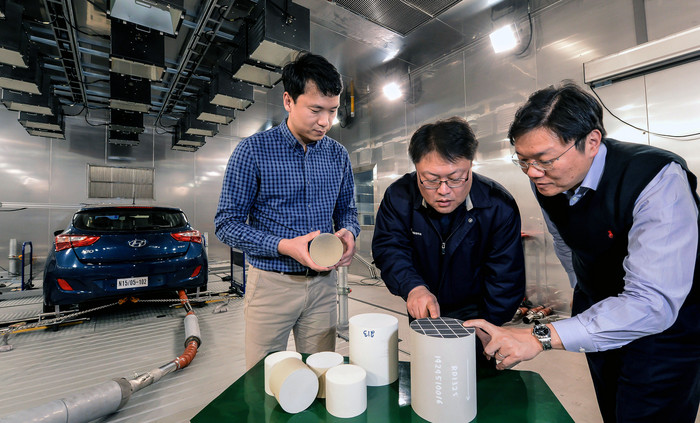 현대기아자동차는 포항공대 연구팀과의 산학 연구를 통해 디젤 차량의 배출가스 저감 장치의 정화 성능을 보다 향상시킬 수 있는 세계 최고 수준의 '고내열성 질소산화물 저감 촉매'를 개발했다고 23일 밝혔다.