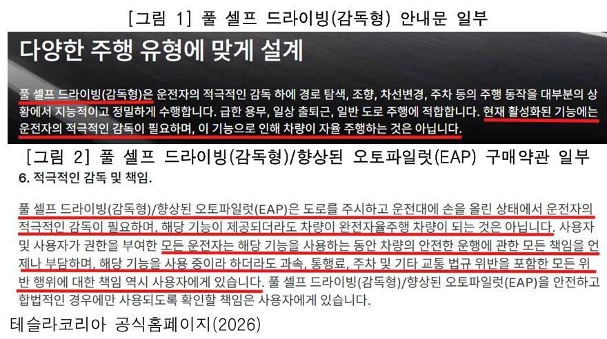 소비자주권시민회의는 판매 방식은 기술의 실제 수준을 넘어서는 기대를 형성해 소비자가 FSD를 운전자 개입 없이 주행이 가능한 자율주행 기술로 오인할 수 있다고 우려했다.