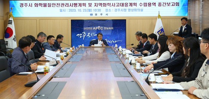 시는 23일 시청 영상회의실에서 '경주시 화학물질 안전관리 시행계획 및 지역화학사고 대응계획 수립용역 중간 보고회'를 가졌다.