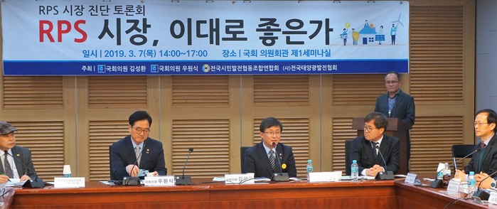 국회 산업통상자원중소벤처기업위원회의 김성환 의원과 우원식 의원은 전국시민발전협동조합연합회, (사)전국태양광발전협회와 함께 7일, 국회의원회관 제1세미나실에서 RPS 시장 진단 토론회를 개최했다.