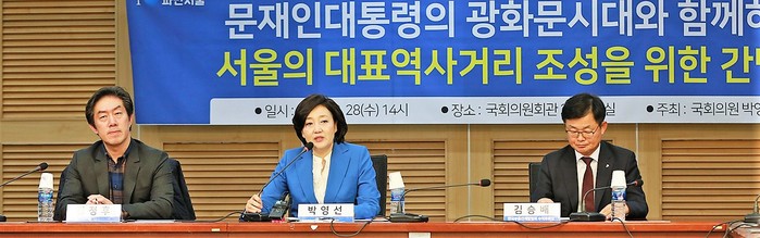 이번 간담회는 박 의원이 출마선언에서 대표 공약으로 제시한 문재인 대통령의 광화문 시대와 함께 북악산에서 서울역까지를 잇는 서울의 대표 역사거리를 조성해 서울시를 600년 역사 궁궐도시로 랜드마크화 하는 것을 구체화 하기 위해 마련된 자리이다.