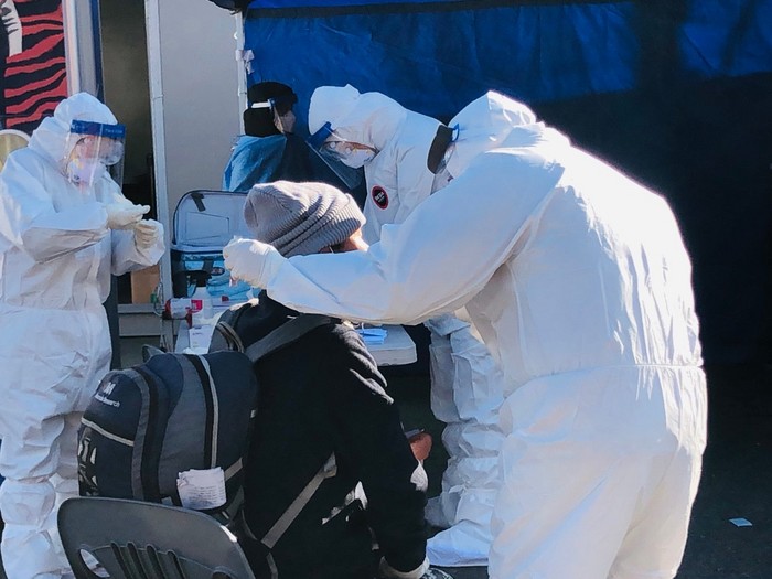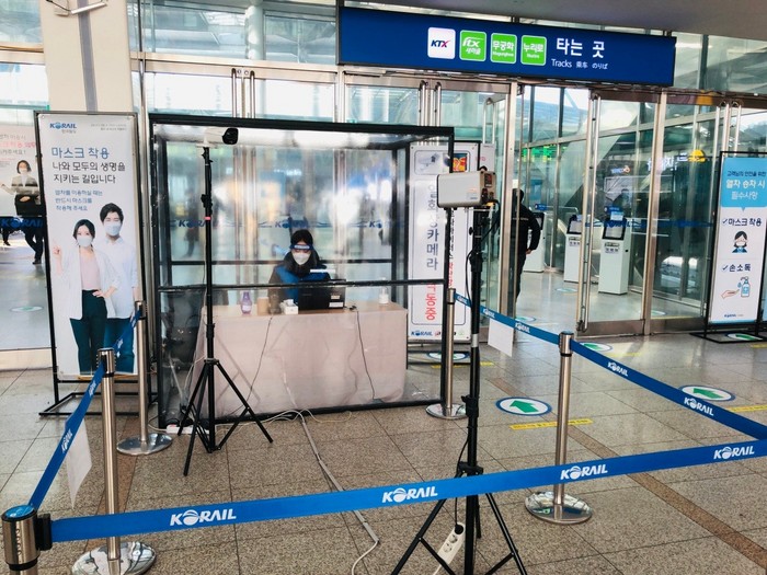 "식당에서 손님 잠깐만요 열체크 좀 할게요 '정상입니다' 학교에서 학생 잠깐만요 열체크 좀 할게요 '정상입니다'