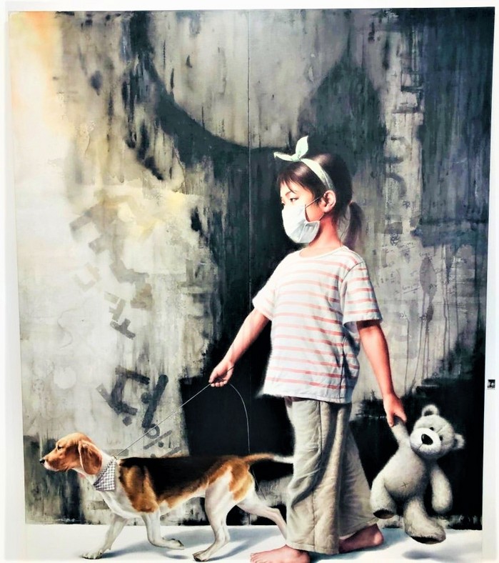 ▲팬데믹 워킹의 제목처럼 아이의 얼굴을 알수 없을만큼 마스크로 가려져 성장해야 하는 불편한 삶을 그려낸 백준승 작가 작품이 우리의 모습이다. |