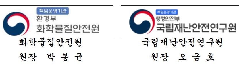 환경부 화학물질안전원은 행안부 소속 국립재난안전연구원(원장 오금호)과 28일 화학물질안전원 청사에서 화학사고 대응·대비 안전관리 체계 강화 협약을 맺는다.