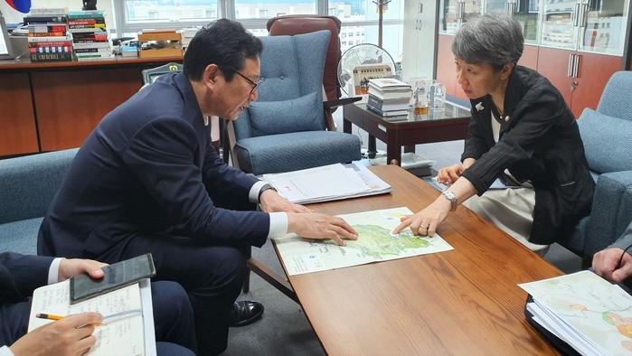 7일 김한정 국회의원(경기 남양주을)이 정재숙 문화청장을 국회에서 만나 남양주시가 광릉 유네스코문화유산 인근에 추진하고 있는 진접읍 부평리 가구산업단지 조성 계획에 대해 반대 입장을 전달하고 문화재 보호 대책 마련을 요구했다.