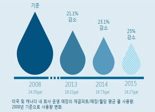 ▲미국 및 캐나다 내 회사 운영 매장의 제곱피트 매장 월평균 전기 사용량 © 환경데일리 |