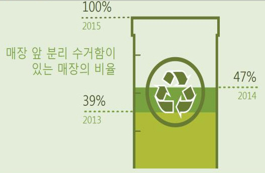 재생에너지에 과감한 투자를 기초로 재상용 가능한 컵에 대한 인식을 소비자에게 자연스럽게 전파하도록 다양한 캠페인을 펴고 있다.