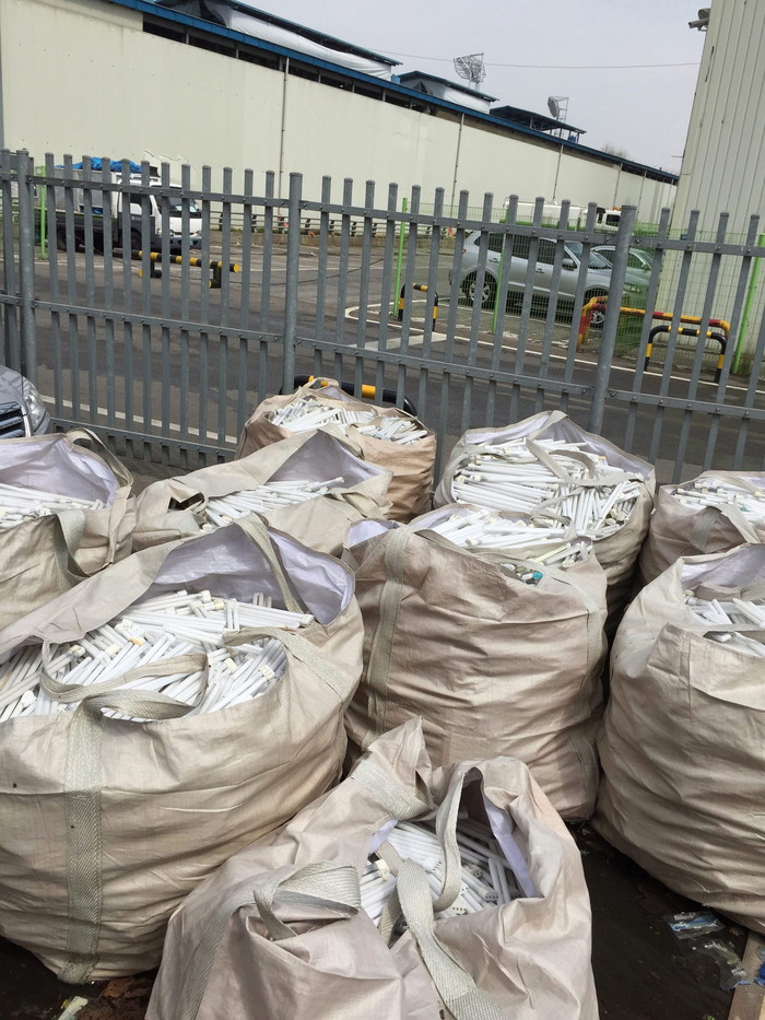 ▲서울시 한 지자체는 폐형광등 안전하게 수거해야 하는 규정도 지키지 않은 채 통백에 그대로 남아 처리되기를 기다리고 있는 실정이다. 이같은 현실은 환경부, 서울시, 화성시의 폐형광등 처리에 대한 업체 선정을 잘 못한 바람에 폐형광등 처리 대란이 일어나 유해물질 수은이 대량으로 비산되는 충격을 주기도 했다. © 환경데일리 |