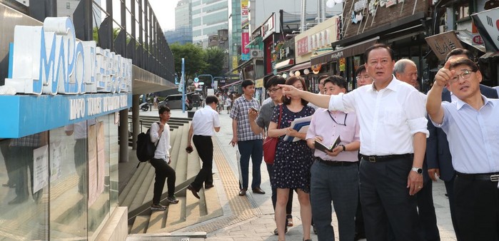 지난 13일, 홍대 걷고싶은거리를 방문한 유동균 구청장은 관광객들이 많이 찾는 마포관광정보센터에서부터 경의선 홍대역 7번 출구까지 현장했다.