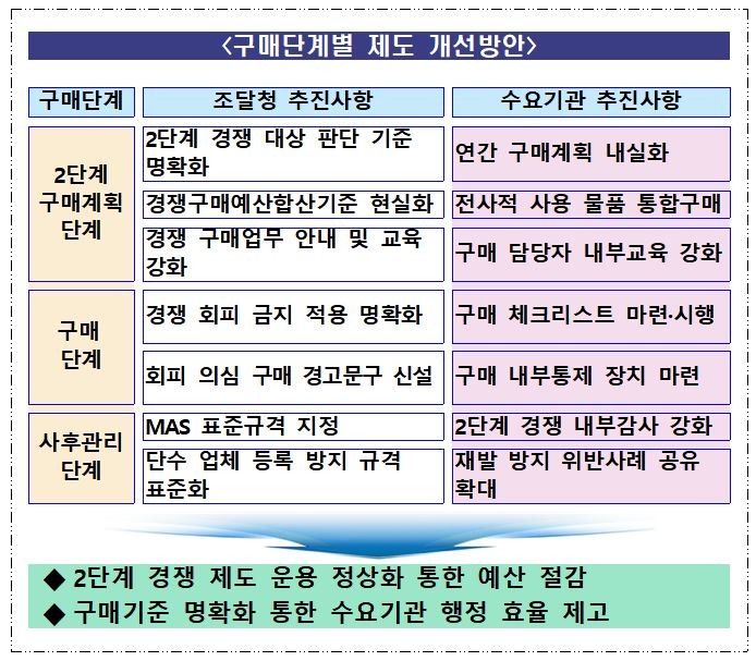 2단계 분할구매 등 예산절감 기회 회피 사례 확인