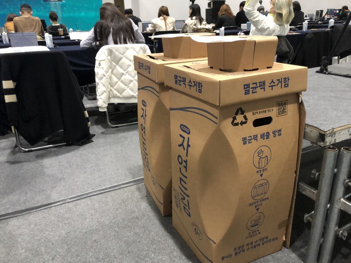 | ▲한국환경산업기술원에서 개최한 2022 대한민국 친환경대전에서 정책세미나장에 대형멸균팩 수거함을 비치해 큰 호응을 받았다. |