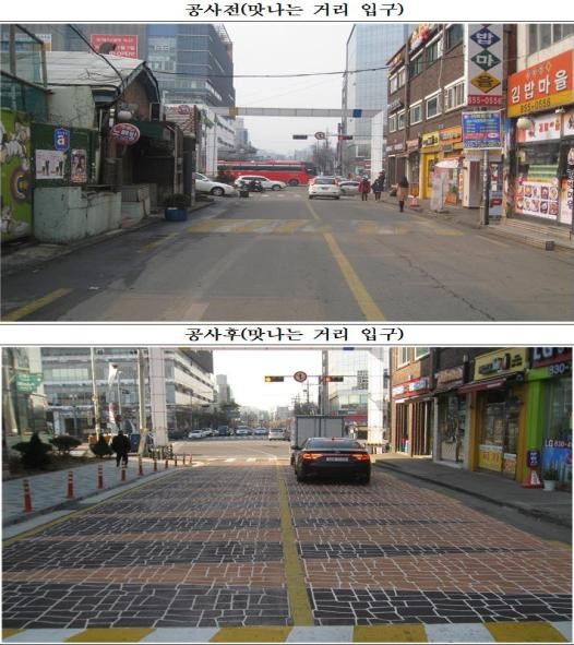 기존 아스팔트 포장 위에 디자인 패턴이 적용된 도막포장을 설치해 차량보다는 보행자가 우선인 도로환경을 만들었다. 포장, 색깔, 문양 등은 인근 상인들의 의견을 직접 수렴해 결정했다.