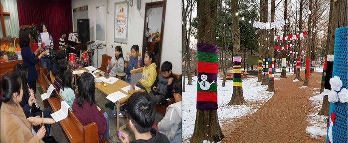 알록달록한 뜨개옷 19벌을 정성스럽게 짜서 나무들에게 옷을 입힌 천사들은 신수동 자원봉사캠프 회원(10명)들이다. 이들은 서울시에서 추진한 2017 월드컵공원 겨울이야기 '이상한 겨울나라' 사업의 일환으로 재능기부활동으로 참여했다.