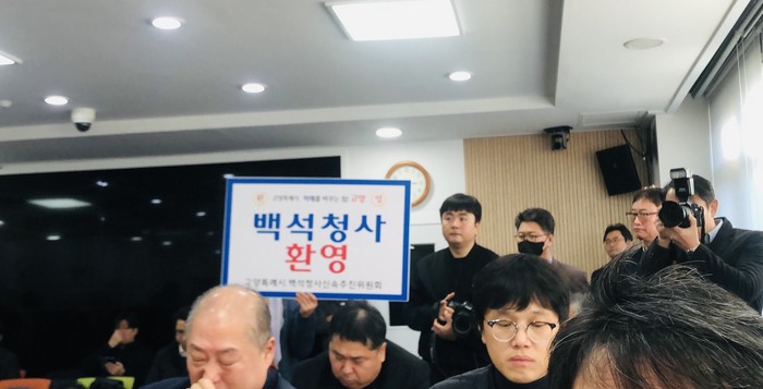 신청사 백석건물은 오피스텔 공간이 아니다. 우호적인 시민들과 만난 적이 없다. 이미 존치 위원들과 여러차례 걸쳐 회의를 했다. 어떤 분들과 소통할려고 한다."고 설명했다.