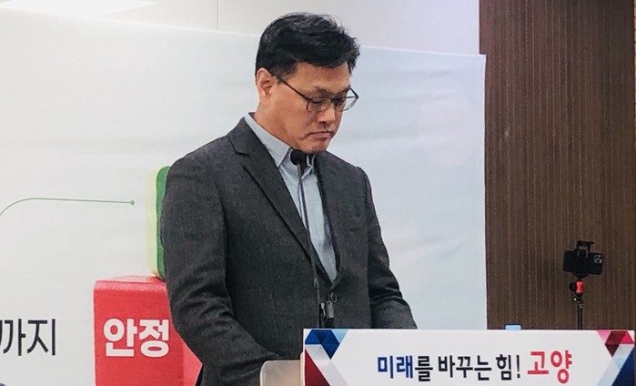 ▲이정형 고양특례시 부시장이 기자회견장에서 입장문을 읽고 있다. |