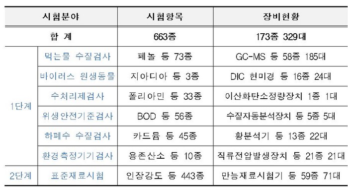 올해는 101억 원을 투입해 표준재료 시험 분야 장비 71대를 추가도입하고 국내 최대 규모의 물 환경 분야 실험분석실을 구축할 방침이다.