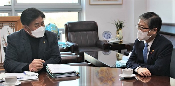 소병훈 의원은 이날 변창흠 장관을 만나 ▲국도 43·45호선 대체 우회도로 개설사업 등 총 6건의 광주시 도로 현안사업과 ▲위례~삼동 (위례~신사 연장사업) 등 총 2건의 광주시 철도사업이 각각 '제5차 국도·국지도 5개년 계획'과 '제4차 국가철도망 구축계획'에 반영될 수 있도록 국토부 장관의 지원을 건의했다.