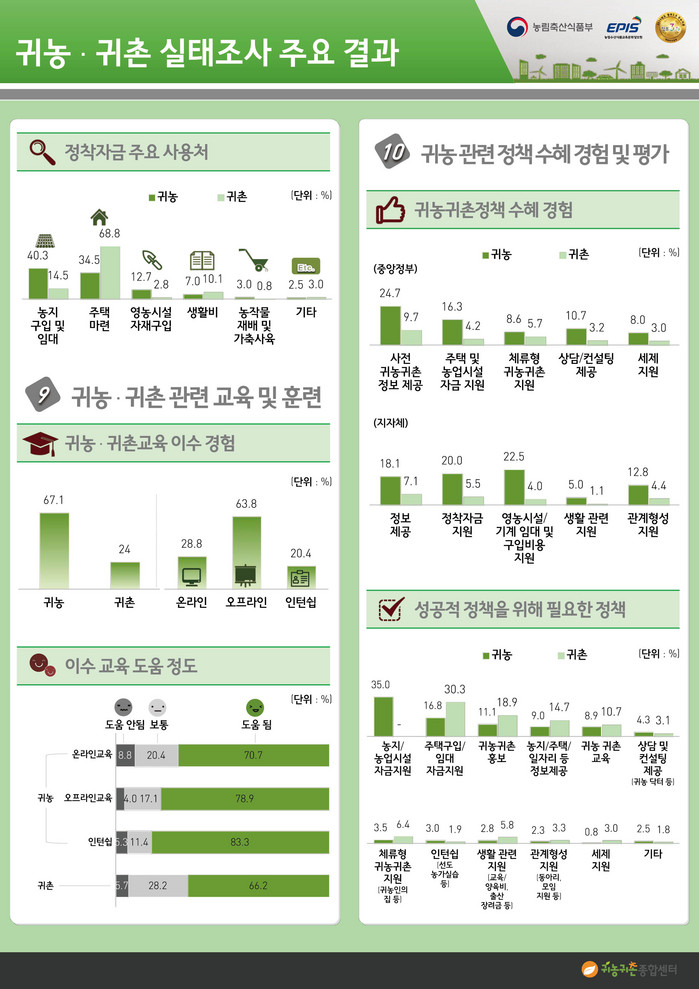 다각적인 귀농귀촌 지원 방안으로 농업의 비전과 발전가능성이 도시보다 높다는 자체 조사결과도 주목된다.
