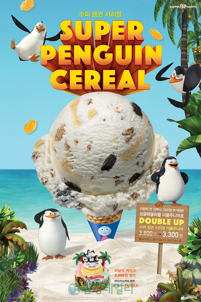 [환경데일리 유혜리 기자]배스킨라빈스가 6월 이달의 맛으로 '수퍼 펭귄 시리얼'을 출시한다고 밝혔다. 이달의 케이크 '마다가스카의 펭귄'도 함께 선보인다.