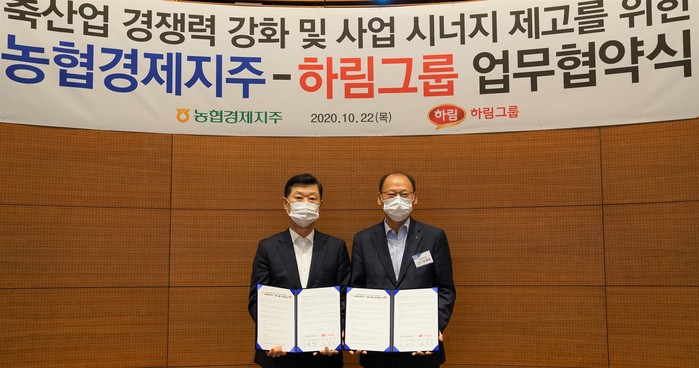 [환경데일리 이남일 기자]농협(회장 이성희) 경제지주와 하림그룹(회장 김홍국)이 국내 농축산업의 발전과 경쟁력 강화를 위해 다각적으로 협력분야를 확대키로 했다. 특히 양 사가 전략적 파트너십을 체결함으로써 농업인 소득증대, 유통물류 효율화를 통한 시장경쟁력 및 소비자 신뢰 제고에 시너지를 발휘할 것으로 기대하고 있다.
