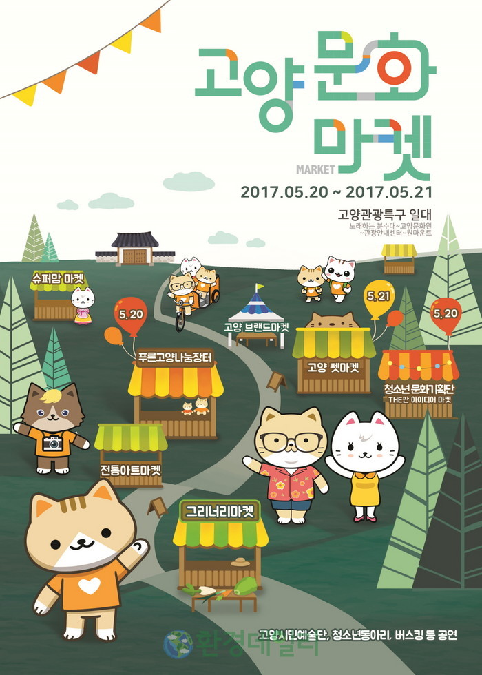 2017 고양 문화마켓에 참여하고자 하는 단체나 개인은 시 신한류관광과(☎031-8075-3404)로 문의하면 된다.