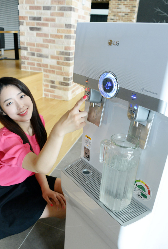 LG전자는 올해 초 데스크형 정수기에 국내 최초로 인버터 컴프레서를 적용한 데 이어 이번에 스탠드 타입 정수기에도 업계 최초로 적용했다. 컴프레서는 정수기의 핵심 부품이다.