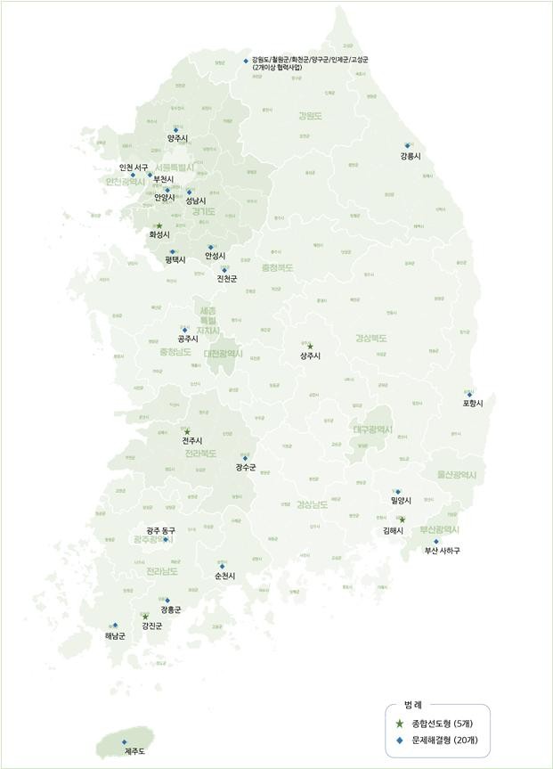 이번 대상지 25곳은 사업목적과 예산 규모 등을 고려해 종합선도형 5곳과 문제해결형 20곳으로 선정됐다.
