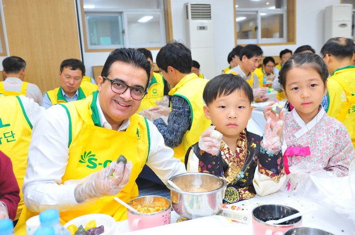 | ▲ S-OIL 오스만 알 감디 CEO는 임직원 100여명과 함께 8일 마포구 성산동 이대성산종합사회복지관에서 사랑의 송편나누기’자원봉사를 열고 지역 내 저소득가정 800세대에 송편과 추석 선물을 전달했다. |