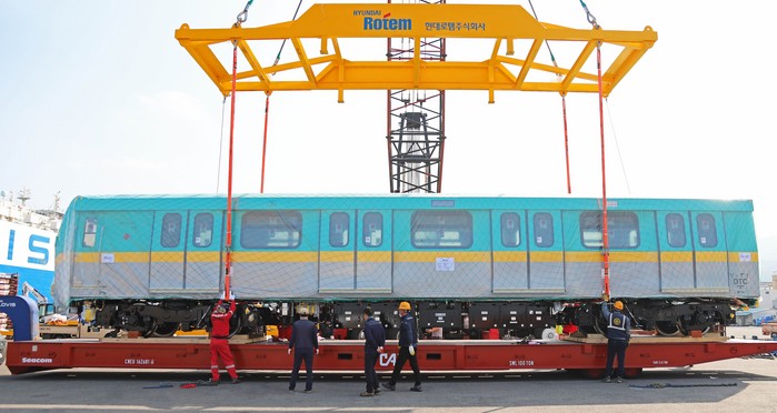현대로템은 이집트 카이로 3호선 전동차 256량 중 초도 8량을 이집트 카이로로 출고 했다고 26일 밝혔다.