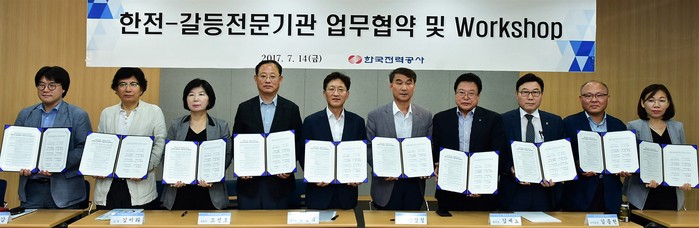 한국전력(사장 조환익)은 14일 서울 대한전기협회에서 갈등관리 전문기관과 갈등관리 협업생태계 조성을 위한 공동 업무협약 및 합동워크숍을 개최했다.