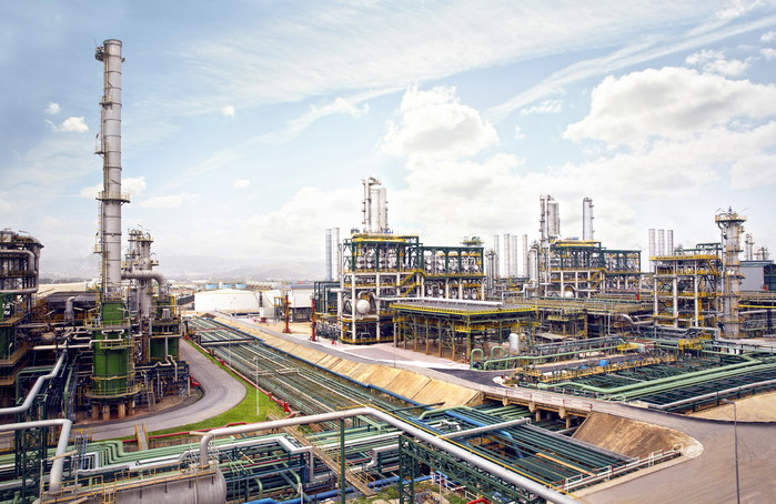 ▲실제 플랜트에서 기기와 장치들을 지지하고 있는 철골구조물과 복잡하게 연결돼 있는 배관의 모습-삼성엔지니어링이 완공한 알제리 스킥다(Skikda) 정유 플랜트 전경 |