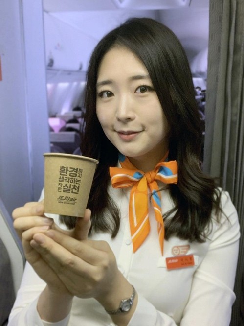 제주항공은 지난해 기내에서 약 840만개의 종이컵을 사용했다. 앞서 제주항공은 지난해말 기내 상품을 포장하는 비닐봉지도 친환경 제품으로 바꿔, 매립 후 90일 안에 완전히 분해되는 생분해 비닐봉지를 사용하고 있다.