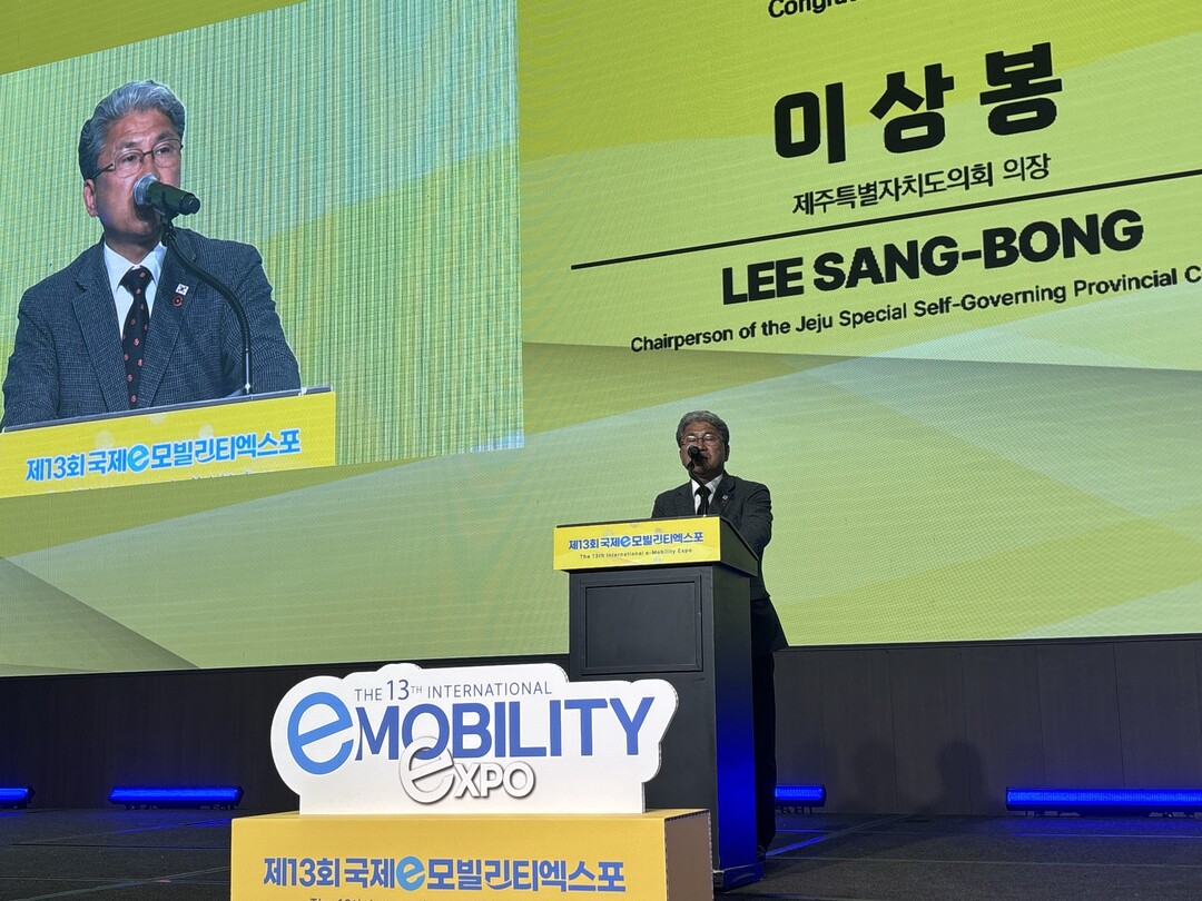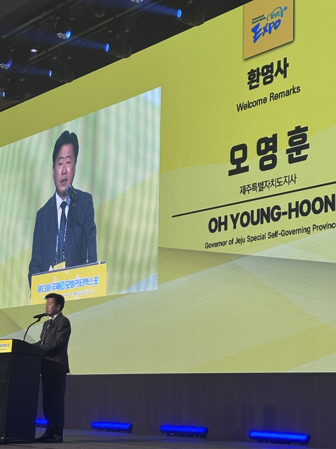 오영훈 제주도지사는 환영사에서 "국제 e-모빌리티 엑스포는 글로벌 협력 플랫폼으로 성장한 대한민국 대표 미래 모빌리티 행사"라며 "제주는 전기차 비중 10.6%로 전국 평균의 3배 수준이며, 2035년 50%, 2040년 100% 전기차 전환을 목표로 하고 있다."고 밝혔다.