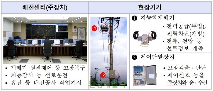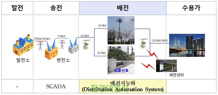 배전지능화시스템((Distribution Automation System) : 통신장치를 통해 배전설비의 현장정보(상태정보, 전류전압, 고장유무 등)을 실시간으로 취득,모니터링하고 원격으로 제어함으로써 정전구간 축소 및 정전시간을 단축할 수 있는 시스템