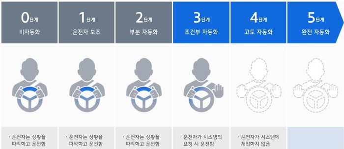 2022년 현대차는 레벨3(부분의 자율주행가능) 수준의 자율주행차의 도로에 달린다. 앞서 구글과 일본은 내년부터 출시된다. 레벨(Level) 3 시스템의 경우 자율주행시스템은 인간운전자, 운용자, 탑승자, 외부액터(타차량, 보행자 등) 등과의 원활한 상호작용을 고려해야 한다.