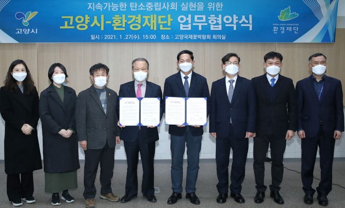 [환경데일리 문종민 기자]고양시와 환경공익재단법인 환경재단이 지속가능한 탄소중립 사회 실현을 위한 업무협약을 체결했다.